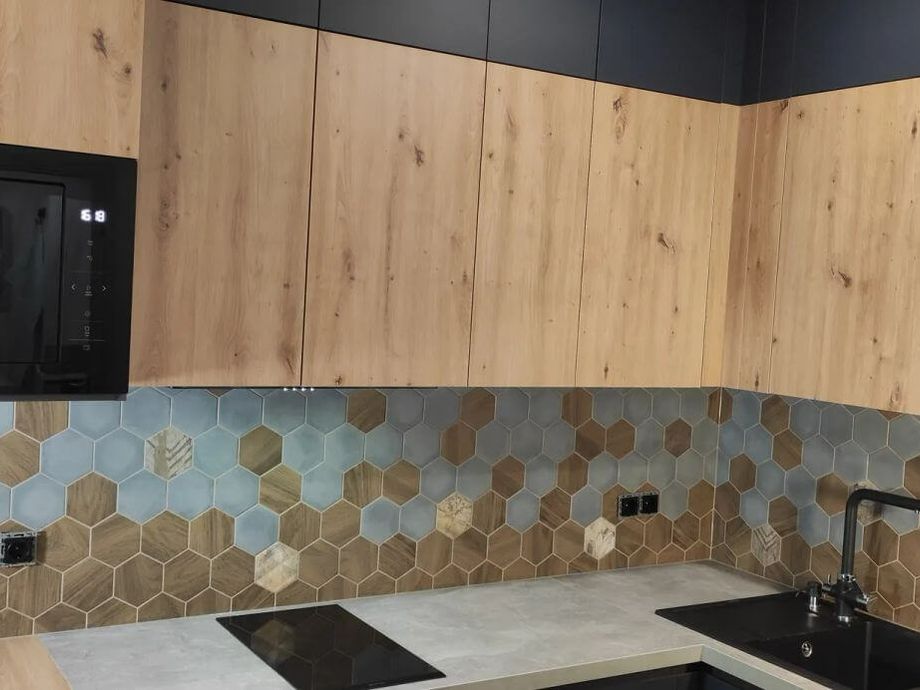 Портфолио Укладки крупноформатного керамогранита на кухонный фартук в Пушкине